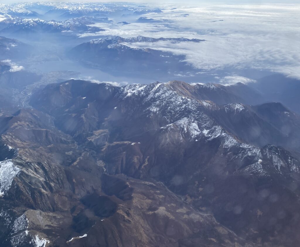 Lento Milanoon sujui yhtä mukavasti. Aikainen aamulento antoi mahdollisuuden ottaa pienet torkut, mutta heräilin juuri sopivasti, kun kone ylitti Alpit.